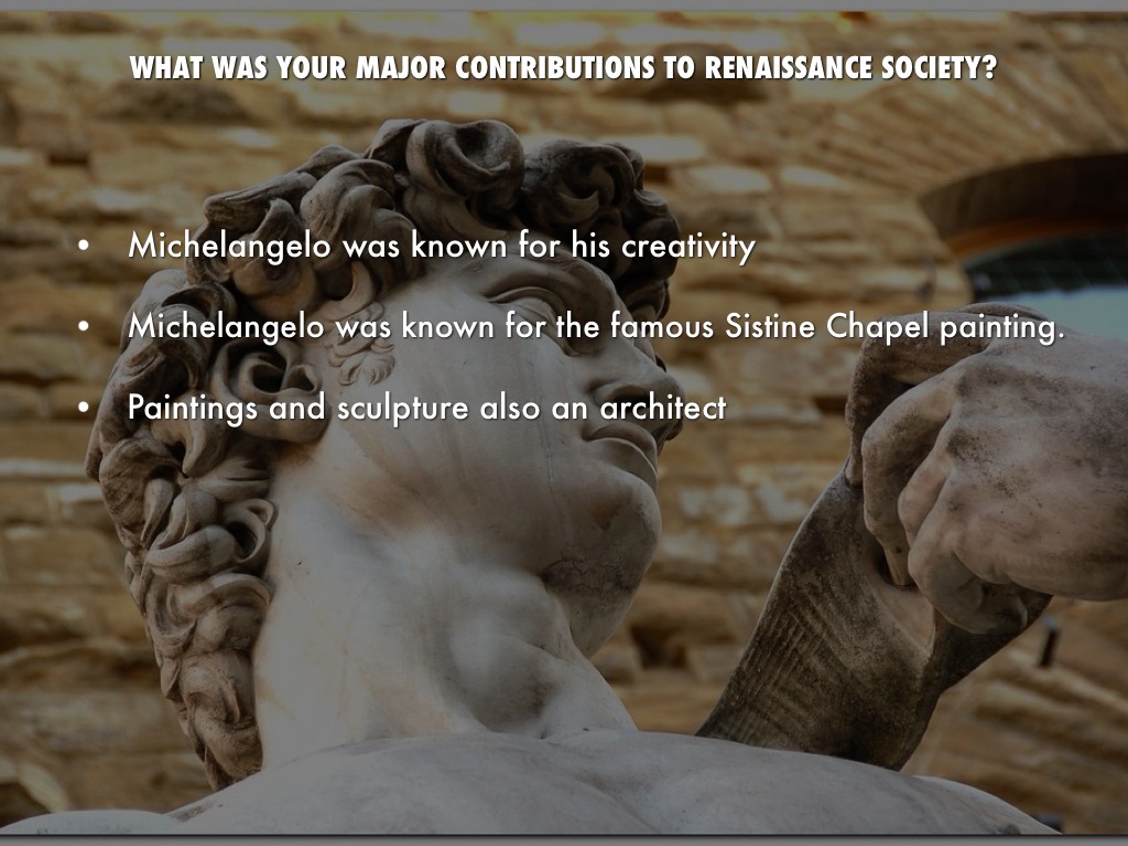 WHAT WAS YOUR MAJOR CONTRIBUTIONS TO RENAISSANCE SOCIETY?