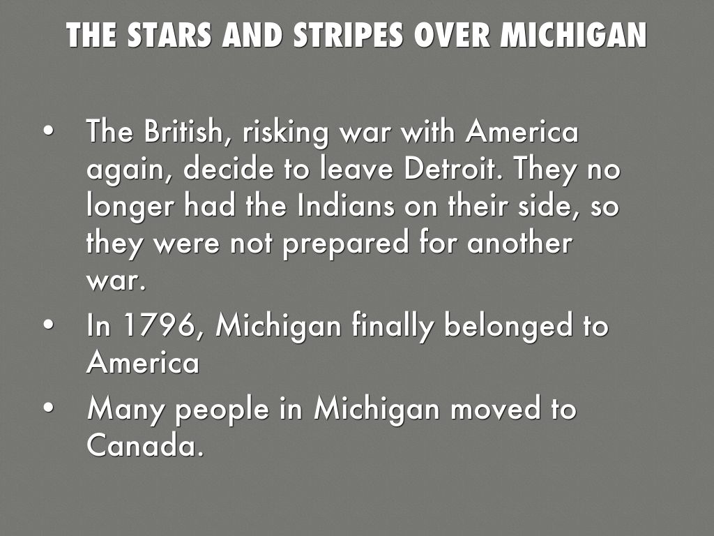 In 1796, Michigan finally belonged to America