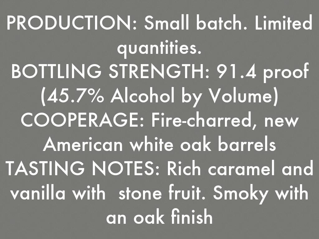 TASTING NOTES: Rich caramel and vanilla with stone fruit. Smoky with an oak finish