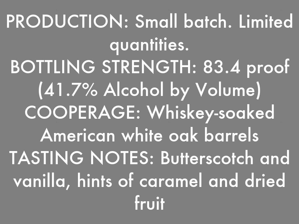 BOTTLING STRENGTH: 83.4 proof (41.7% Alcohol by Volume)