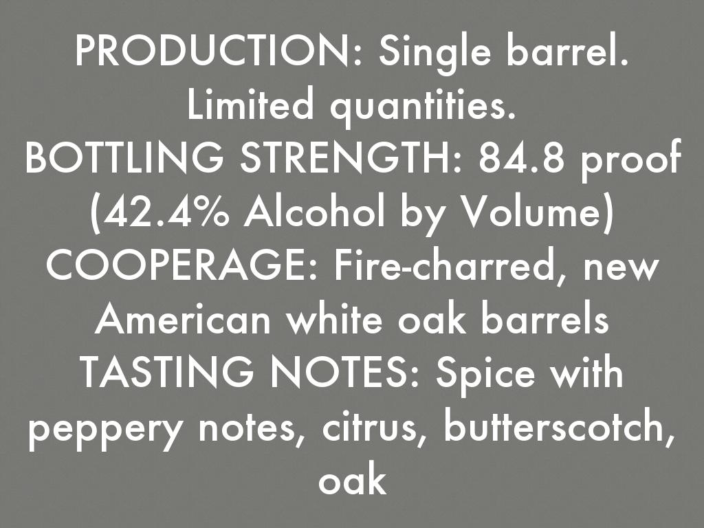 TASTING NOTES: Spice with peppery notes, citrus, butterscotch, oak