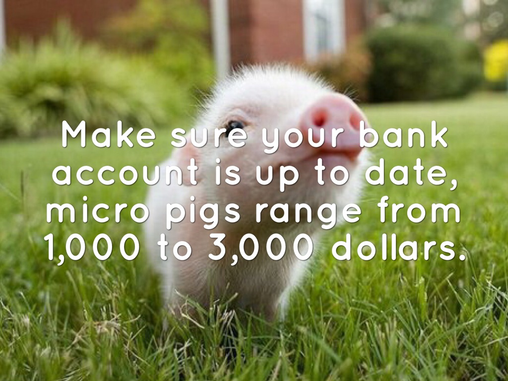 Make sure your bank account is up to date, micro pigs range from 1,000 to 3,000 dollars.