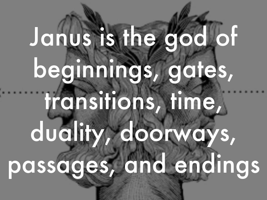 Janus is the god of beginnings, gates, transitions, time, duality, doorways, passages, and endings