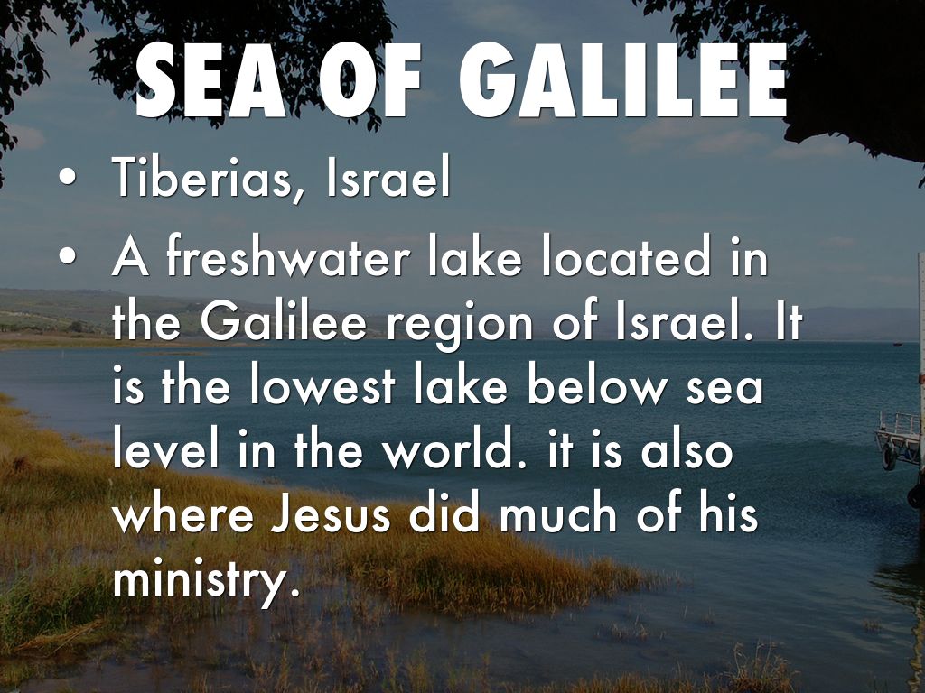 A freshwater lake located in the Galilee region of Israel. It is the lowest lake below sea level in the world. it is also where Jesus did much of his ministry.