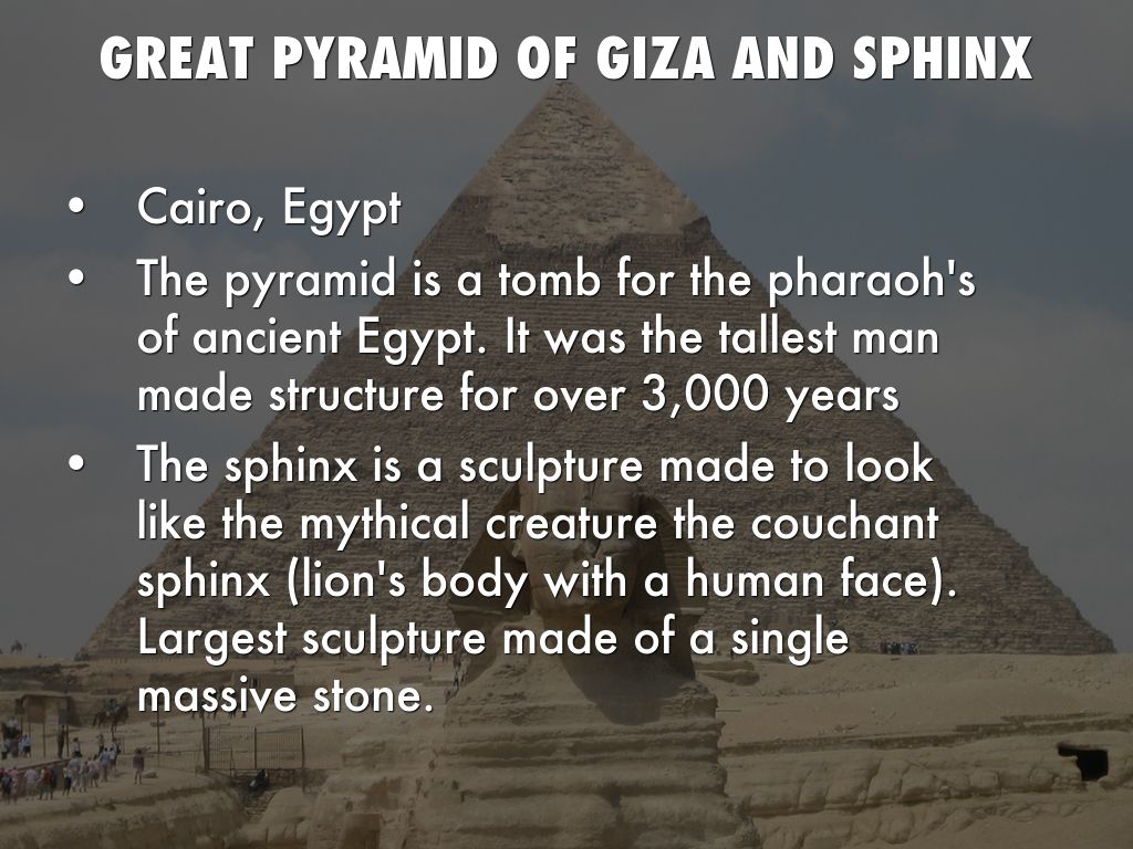 The pyramid is a tomb for the pharaoh's of ancient Egypt. It was the tallest man made structure for over 3,000 years