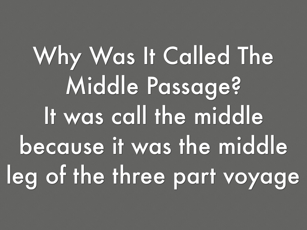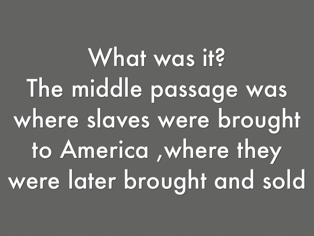 The middle passage was where slaves were brought to America ,where they were later brought and sold