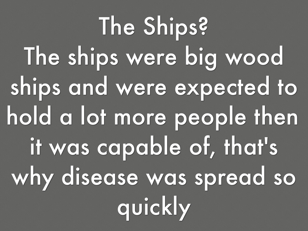 The ships were big wood ships and were expected to hold a lot more people then it was capable of, that's why disease was spread so quickly