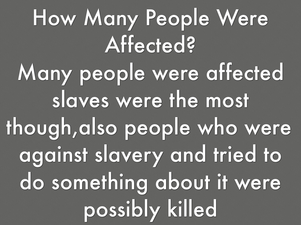 Many people were affected slaves were the most though,also people who were against slavery and tried to do something about it were possibly killed