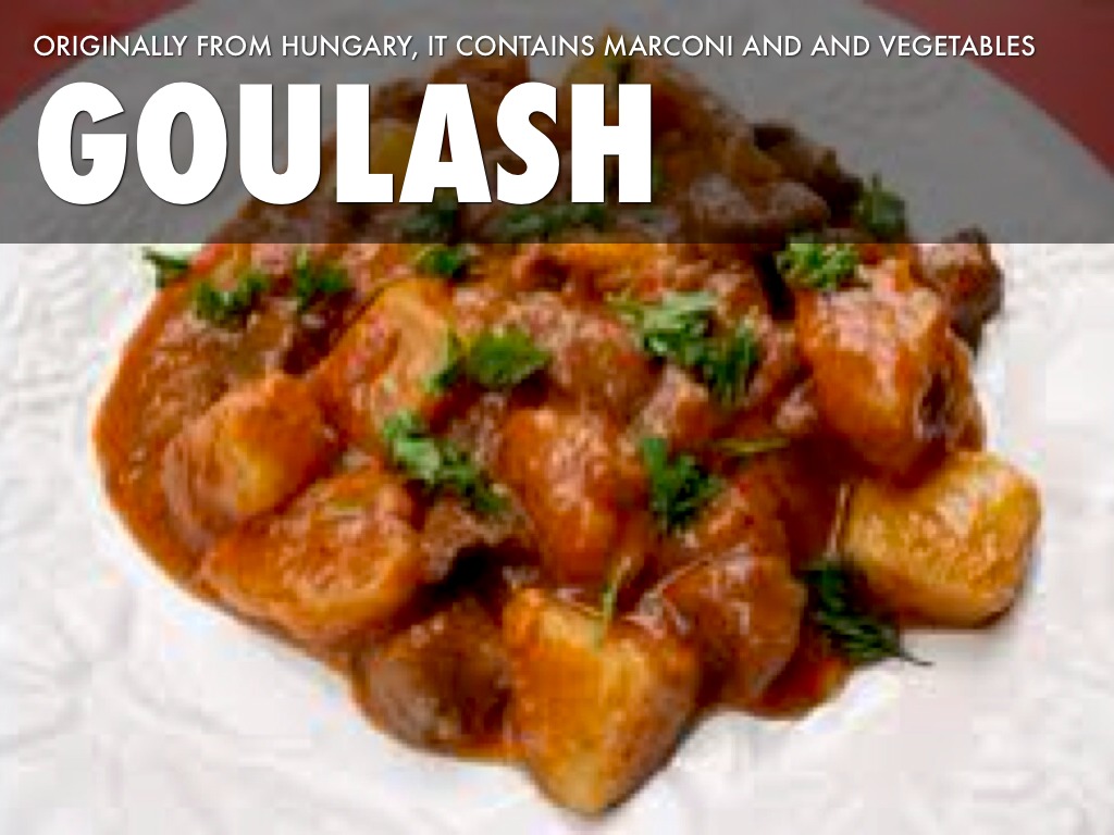 ORIGINALLY FROM HUNGARY, IT CONTAINS MARCONI AND AND VEGETABLES