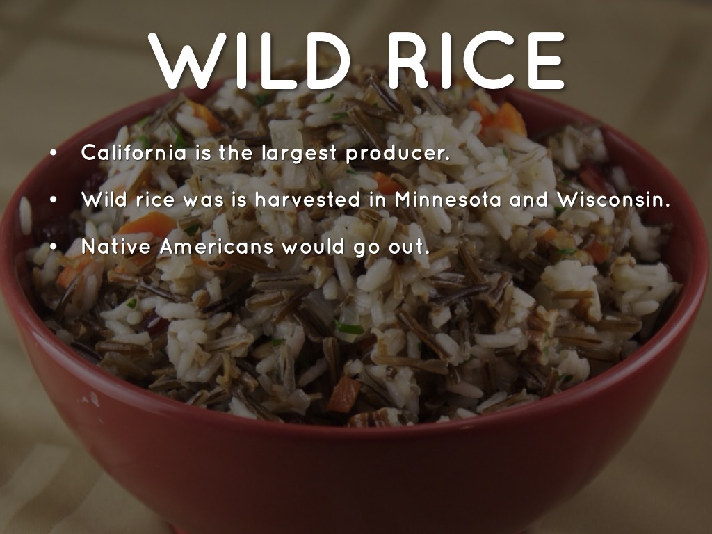 Wild rice was is harvested in Minnesota and Wisconsin.
