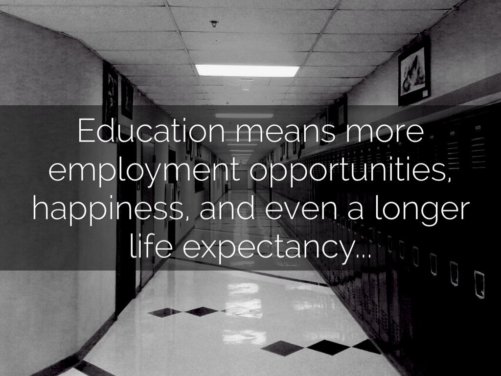 Education means more employment opportunities, happiness, and even a longer life expectancy...