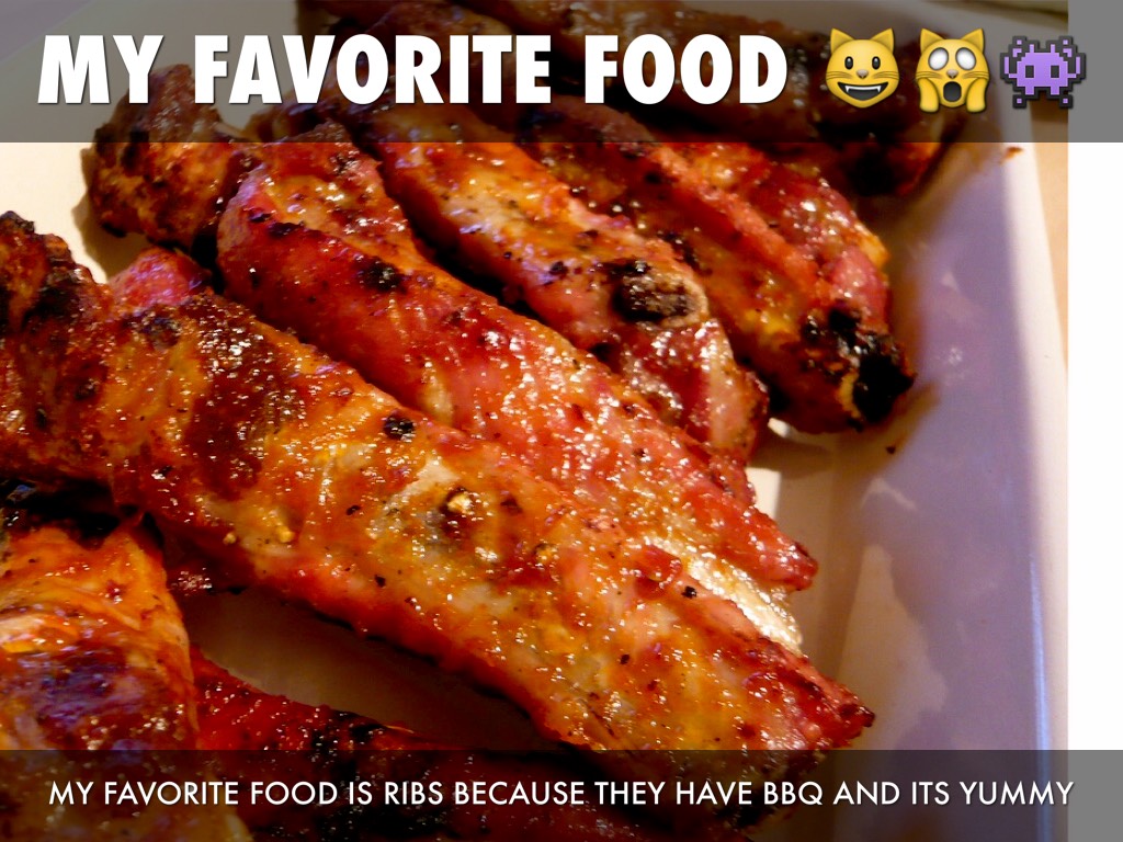 MY FAVORITE FOOD IS RIBS BECAUSE THEY HAVE BBQ AND ITS YUMMY