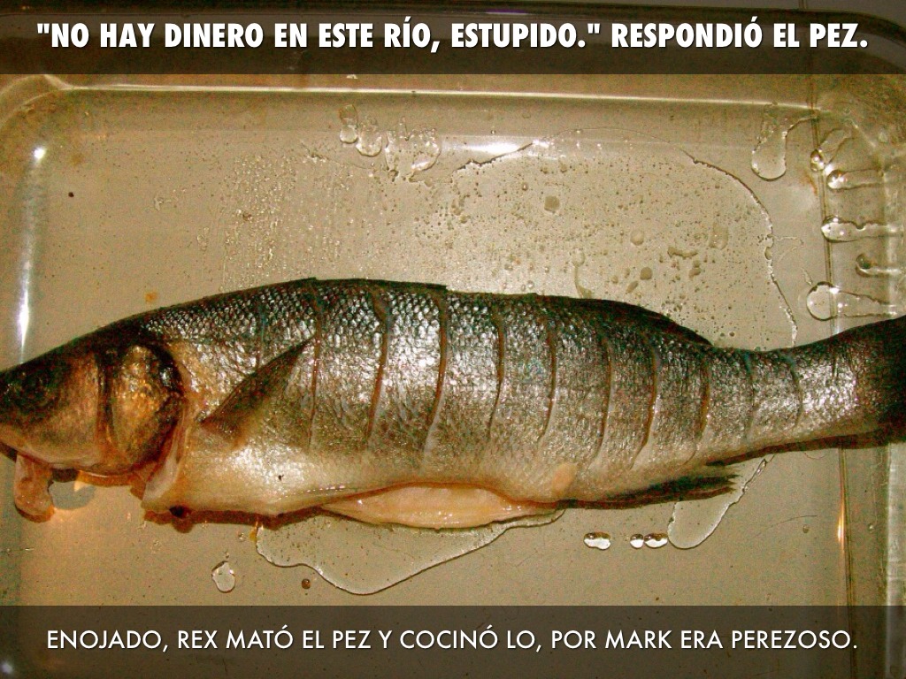 "NO HAY DINERO EN ESTE RÍO, ESTUPIDO." RESPONDIÓ EL PEZ.