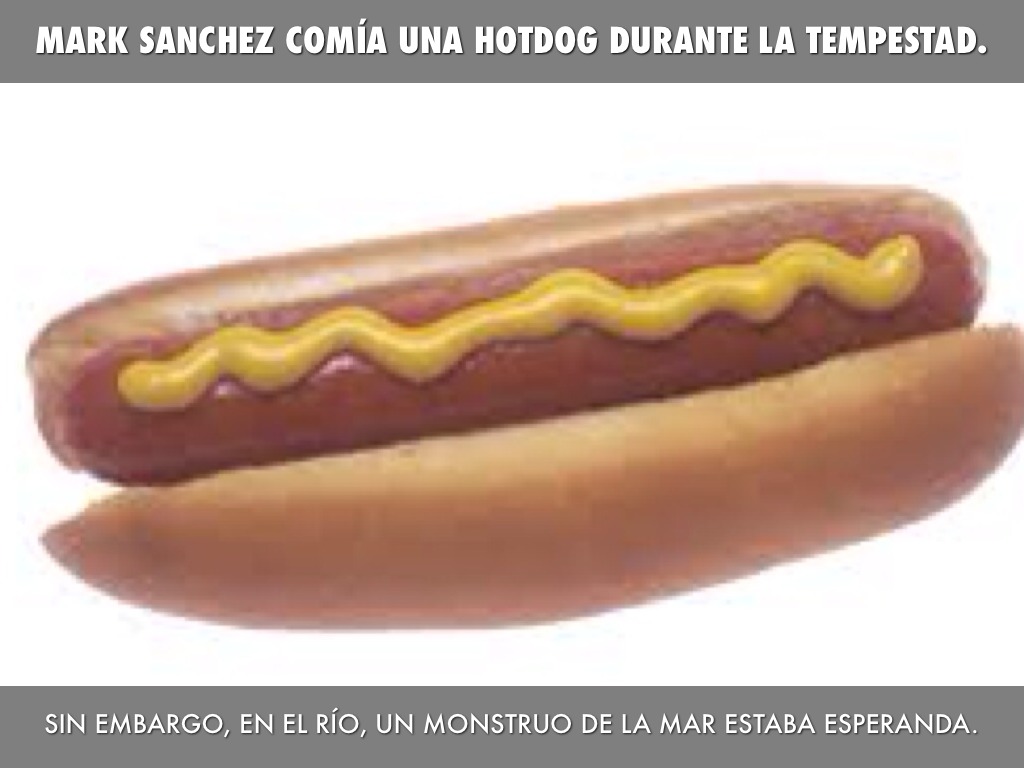 MARK SANCHEZ COMÍA UNA HOTDOG DURANTE LA TEMPESTAD.