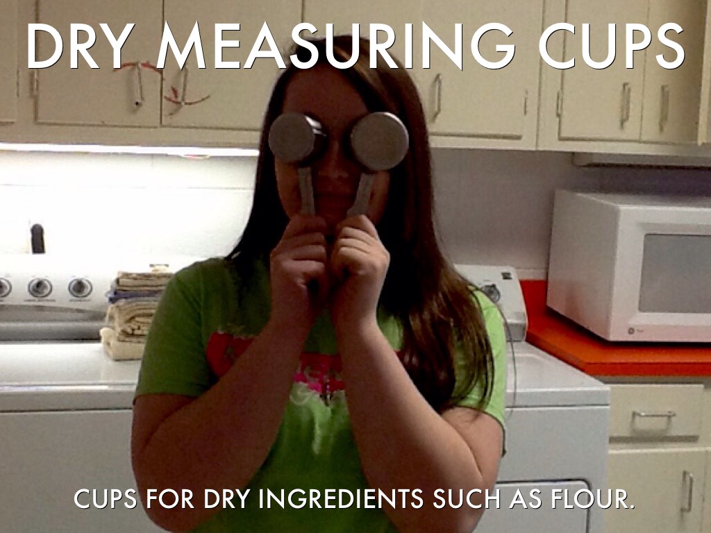 CUPS FOR DRY INGREDIENTS SUCH AS FLOUR.