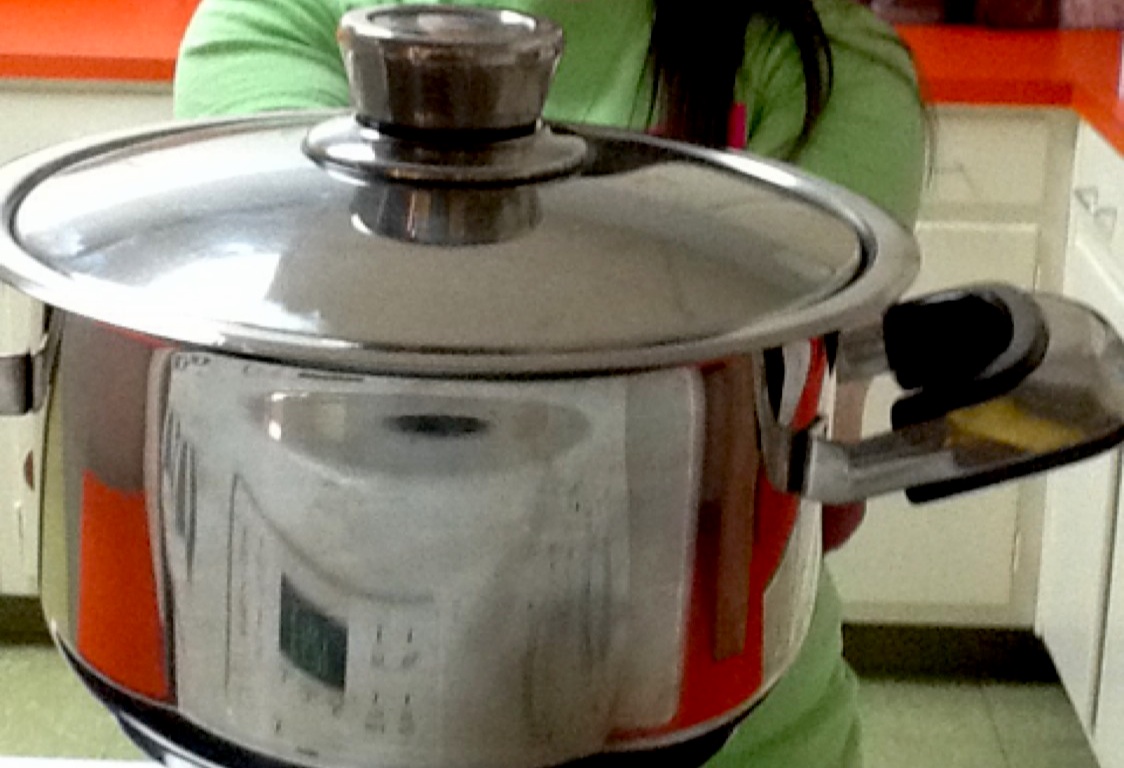 A DEEP PAN WITH 1 LONG HANDLE USED FOR SIMMERING OR BOILING