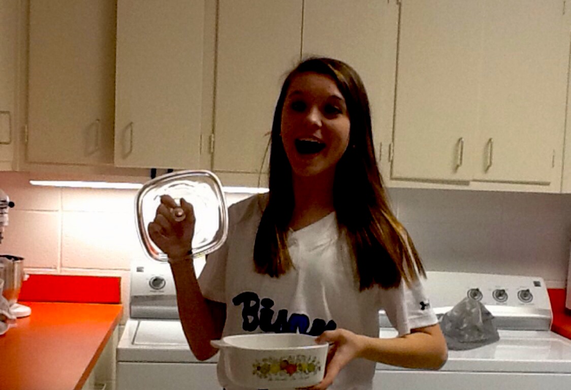 SCRAPING THE SIDE OF THE BOWL AFTER MIXING