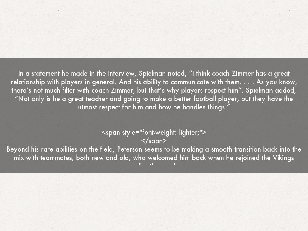 Mike Zimmer Credited for Adrian Peterson’s Return