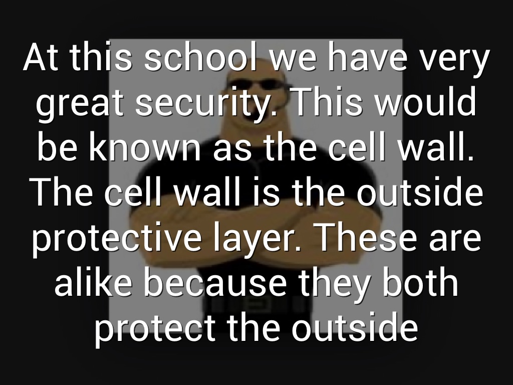At this school we have very great security. This would be known as the cell wall. The cell wall is the outside protective layer. These are alike because they both protect the outside