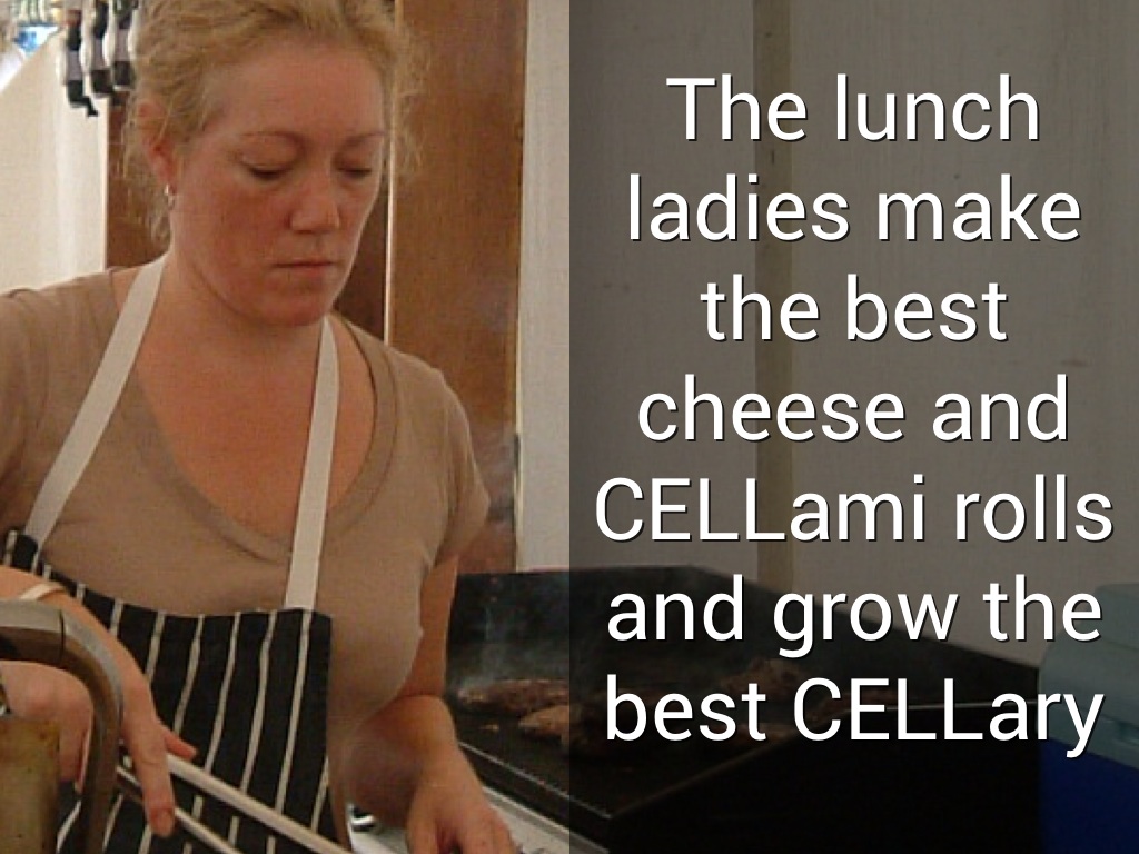The lunch ladies make the best cheese and CELLami rolls and grow the best CELLary