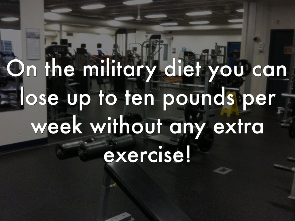 On the military diet you can lose up to ten pounds per week without any extra exercise!
