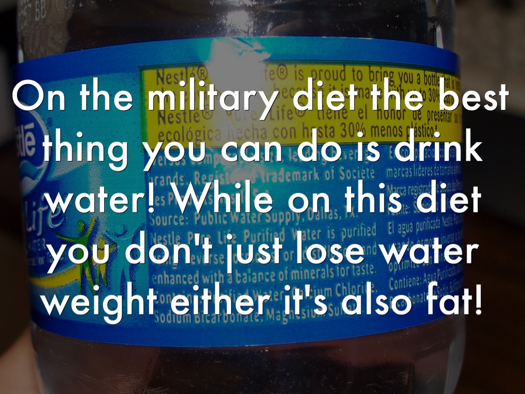 On the military diet the best thing you can do is drink water! While on this diet you don't just lose water weight either it's also fat!