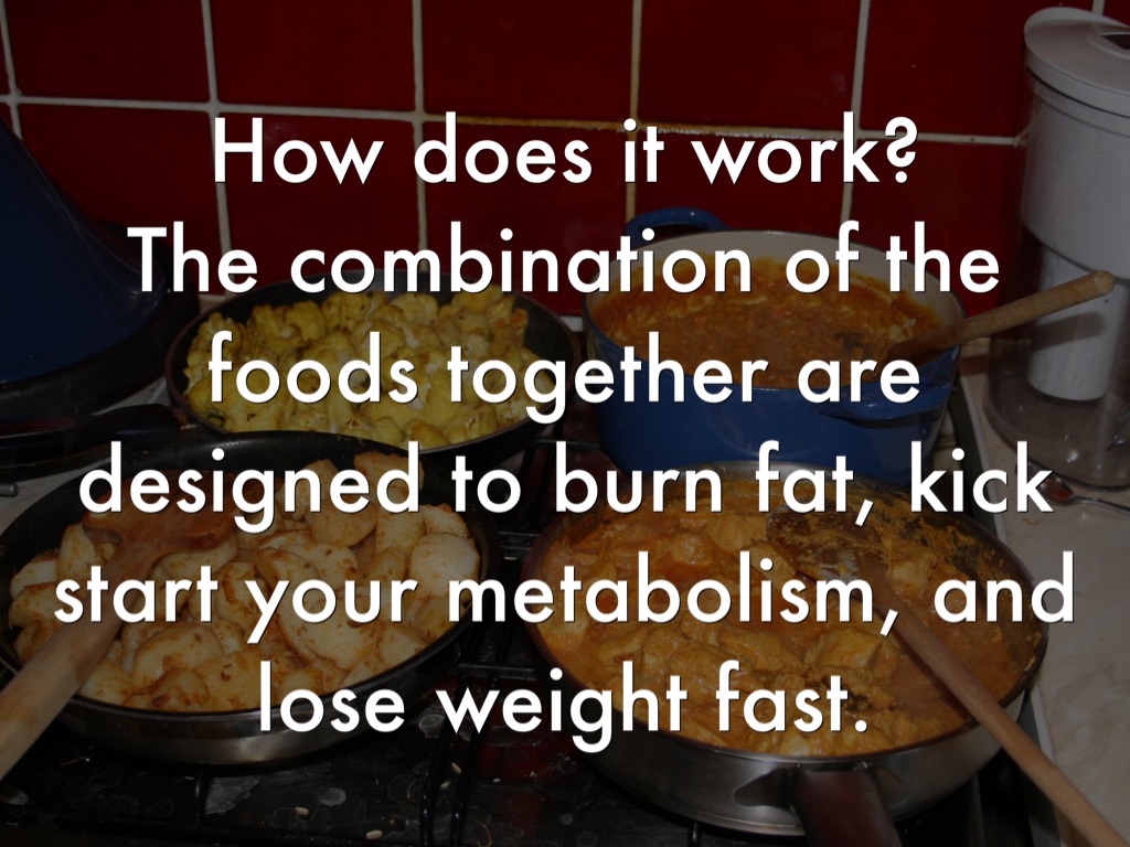 The combination of the foods together are designed to burn fat, kick start your metabolism, and lose weight fast.