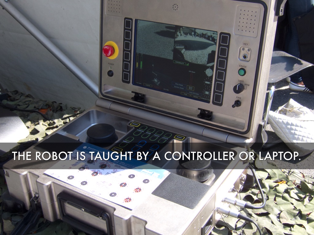 THE ROBOT IS TAUGHT BY A CONTROLLER OR LAPTOP.
