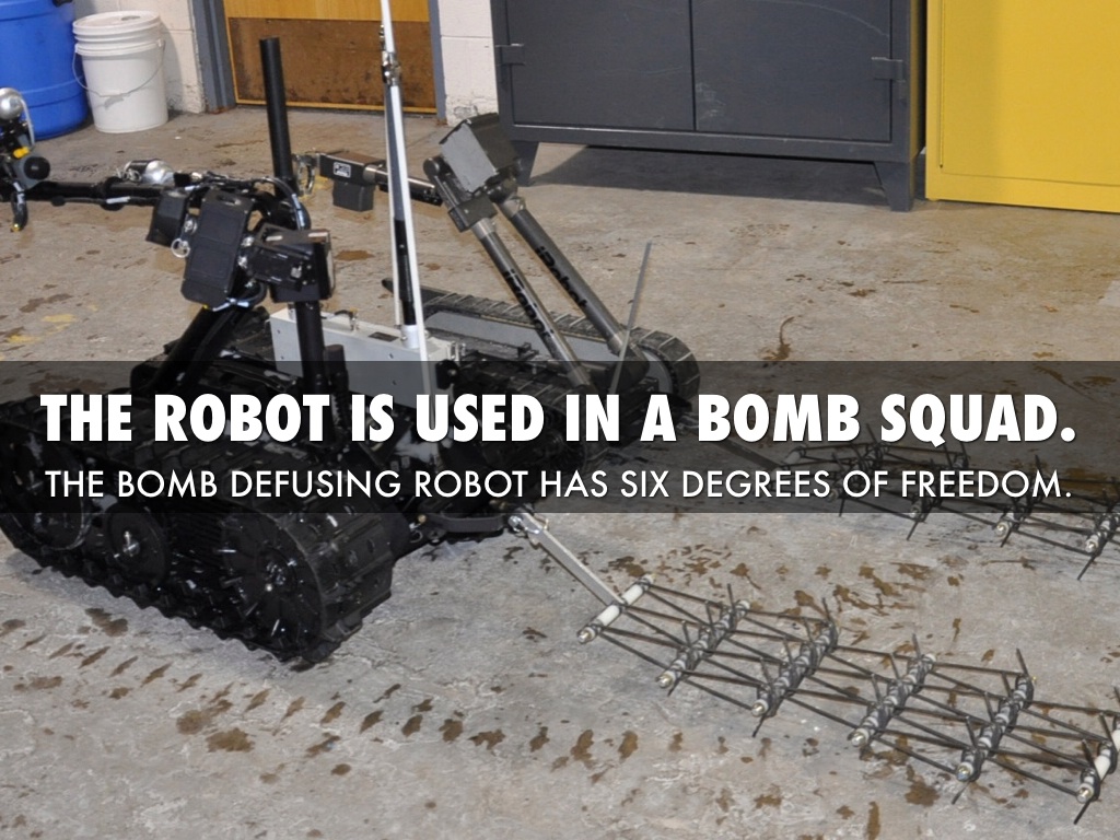 THE BOMB DEFUSING ROBOT HAS SIX DEGREES OF FREEDOM.