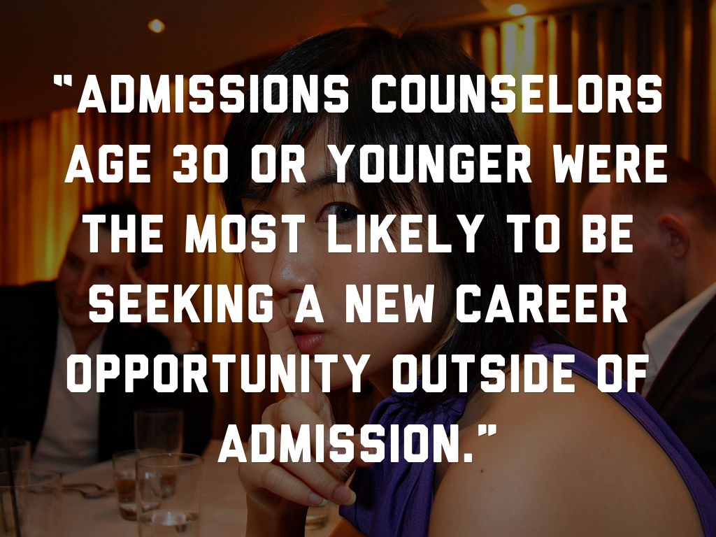 “Admissions Counselors age 30 or younger were the most likely to be seeking a new career opportunity outside of admission.”