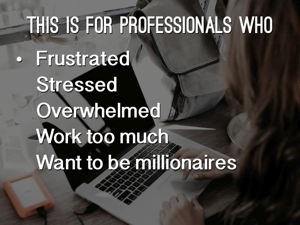 Frustrated Stressed Overwhelmed Work too much Want to be millionaires