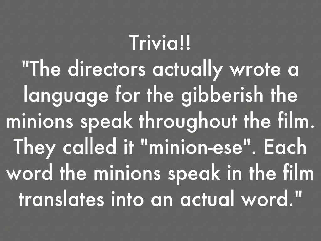 "The directors actually wrote a language for the gibberish the minions speak throughout the film. They called it "minion-ese". Each word the minions speak in the "film translates into an actual word."