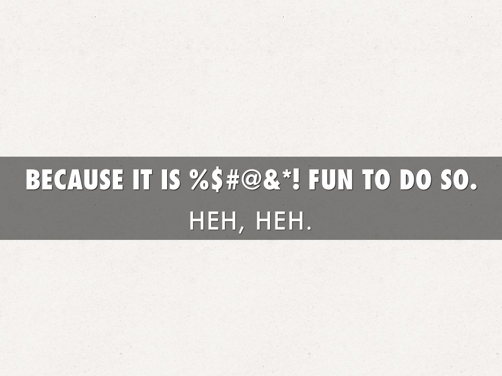 BECAUSE IT IS %$#@&*! FUN TO DO SO.