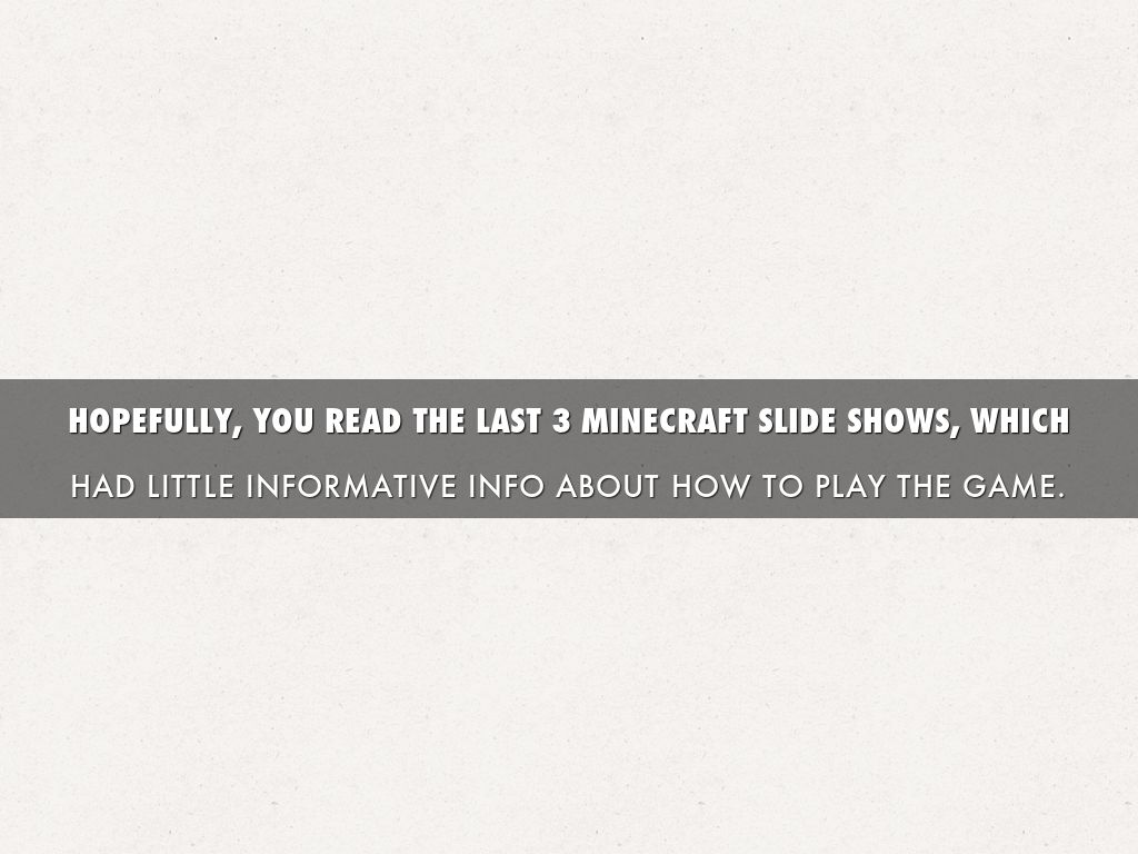 HOPEFULLY, YOU READ THE LAST 3 MINECRAFT SLIDE SHOWS, WHICH