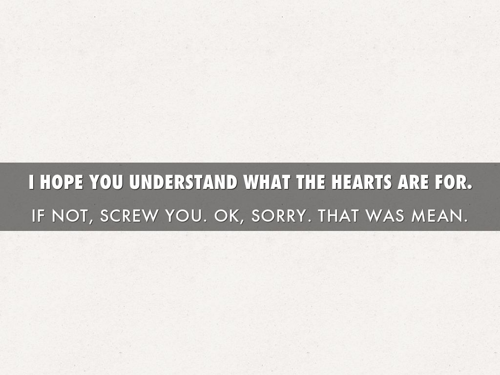 I HOPE YOU UNDERSTAND WHAT THE HEARTS ARE FOR.