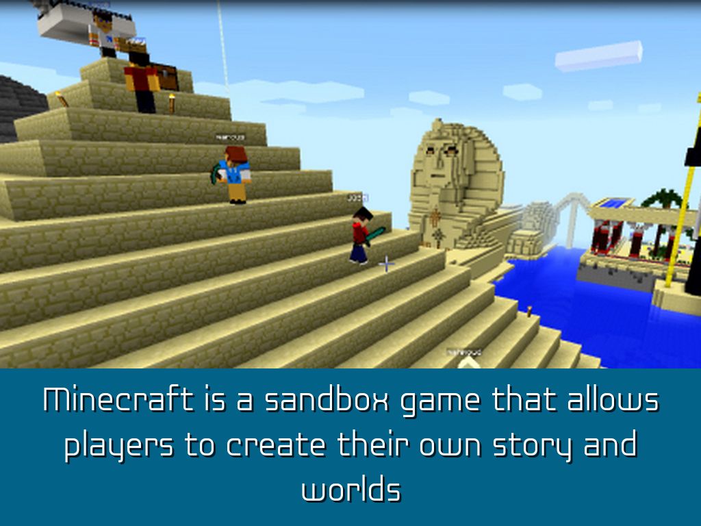Minecraft is a sandbox game that allows players to create their own story and worlds