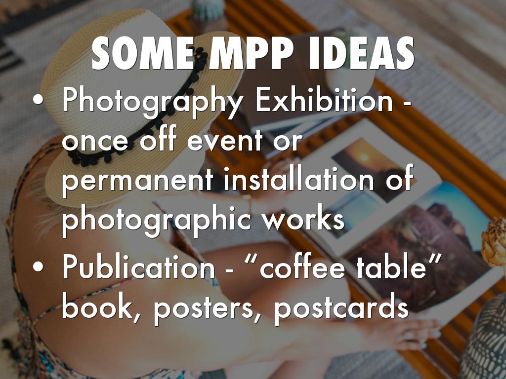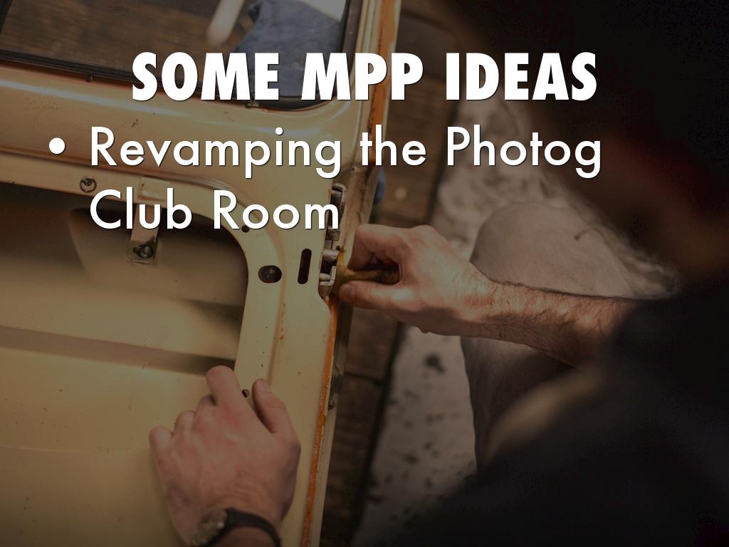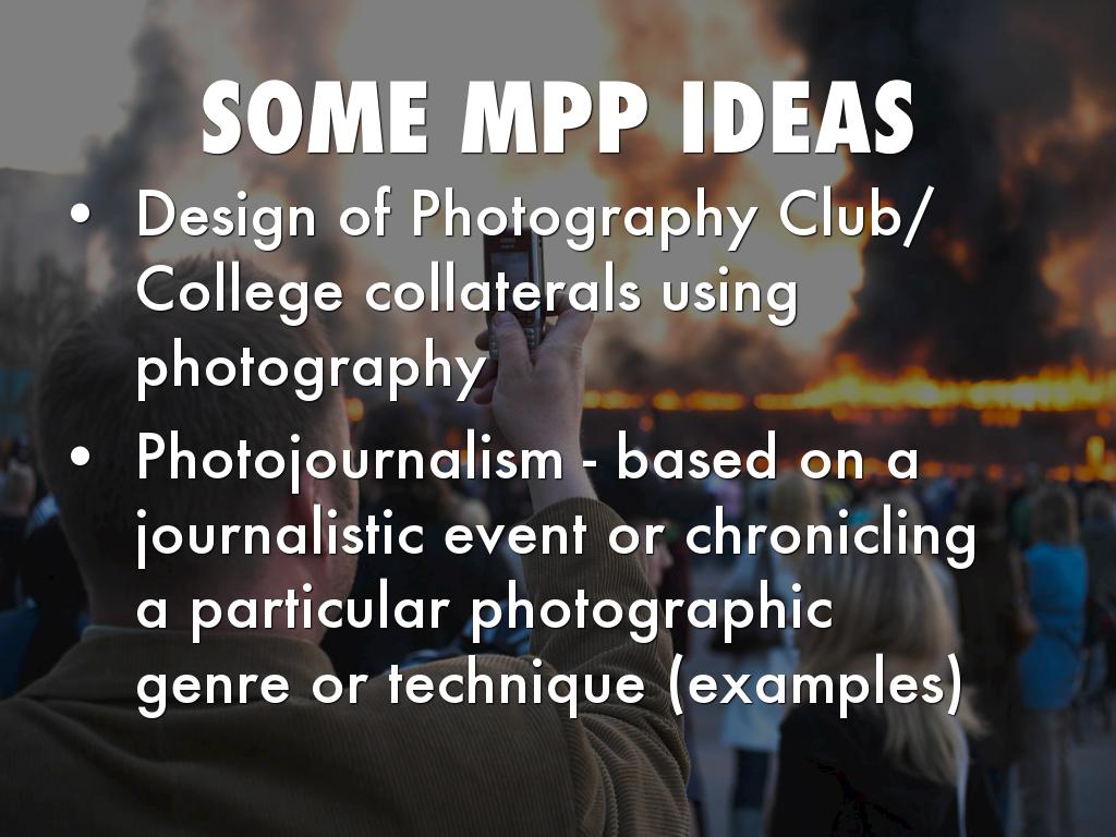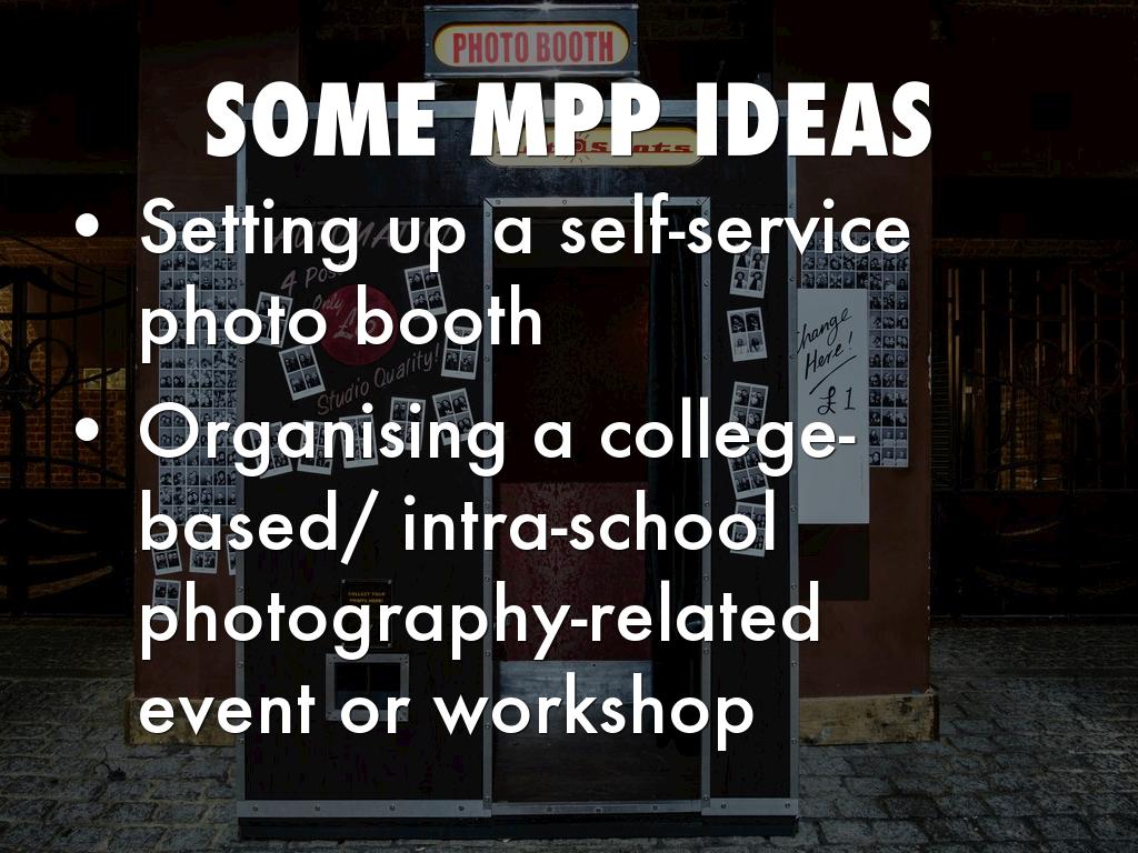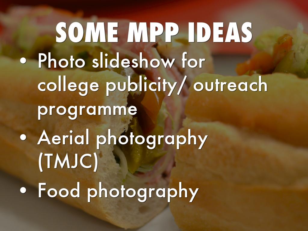 preferably not related to service component of Photography Club or any other CCA activities done at CCA level e.g. college events photography coverage, Photog Camp etc. Also the MPP should value add to your contributions in the CCA, going beyond CCA duties/ events and comprehensive enough to be stated in your testimonial etc.