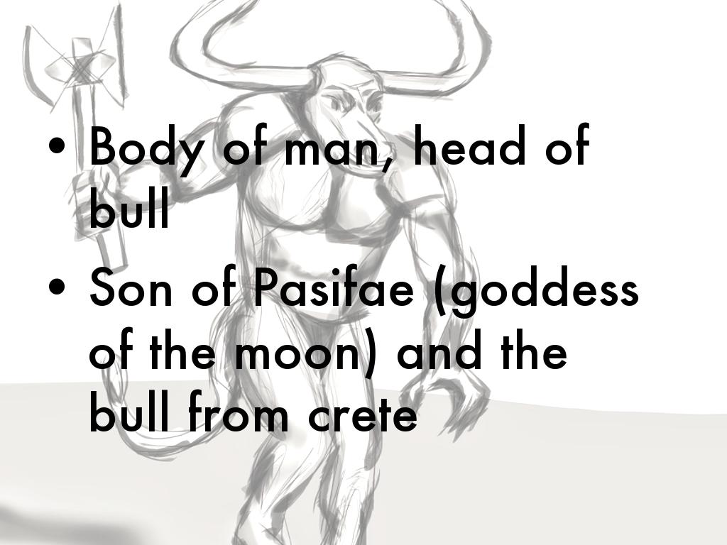 Son of Pasifae (goddess of the moon) and the bull from crete