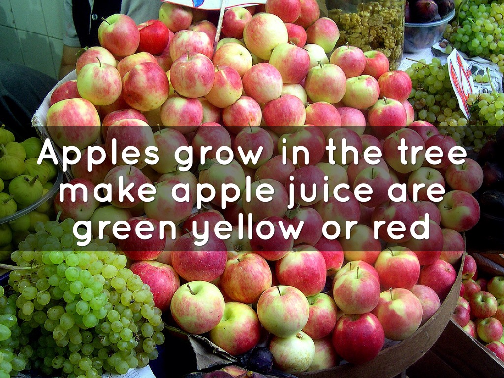 Apples grow in the tree make apple juice are green yellow or red