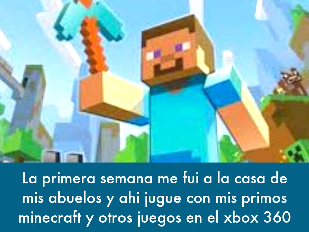 La primera semana me fui a la casa de mis abuelos y ahi jugue con mis primos minecraft y otros juegos en el xbox 360