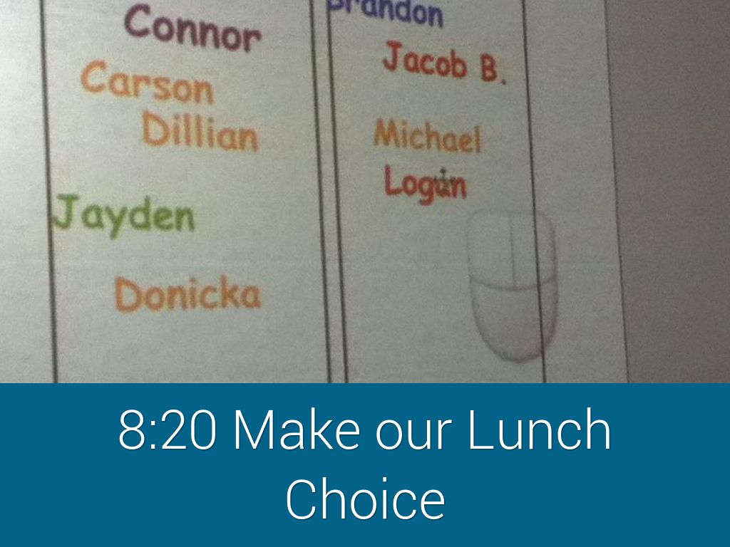 8:30 Messengers Take Down Lunch Count and Attendance to Office and Lunch Room
