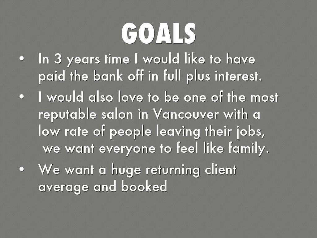 I would also love to be one of the most reputable salon in Vancouver with a low rate of people leaving their jobs, we want everyone to feel like family.