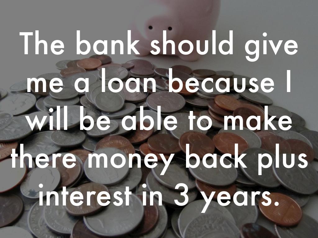 In 3 years time I would like to have paid the bank off in full plus interest.