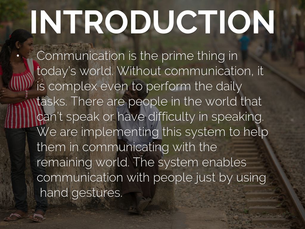 Communication is the prime thing in today’s world. Without communication, it is complex even to perform the daily tasks. There are people in the world that can’t speak or have difficulty in speaking. We are implementing this system to help them in communicating with the remaining world. The system enables communication with people just by using hand gestures.