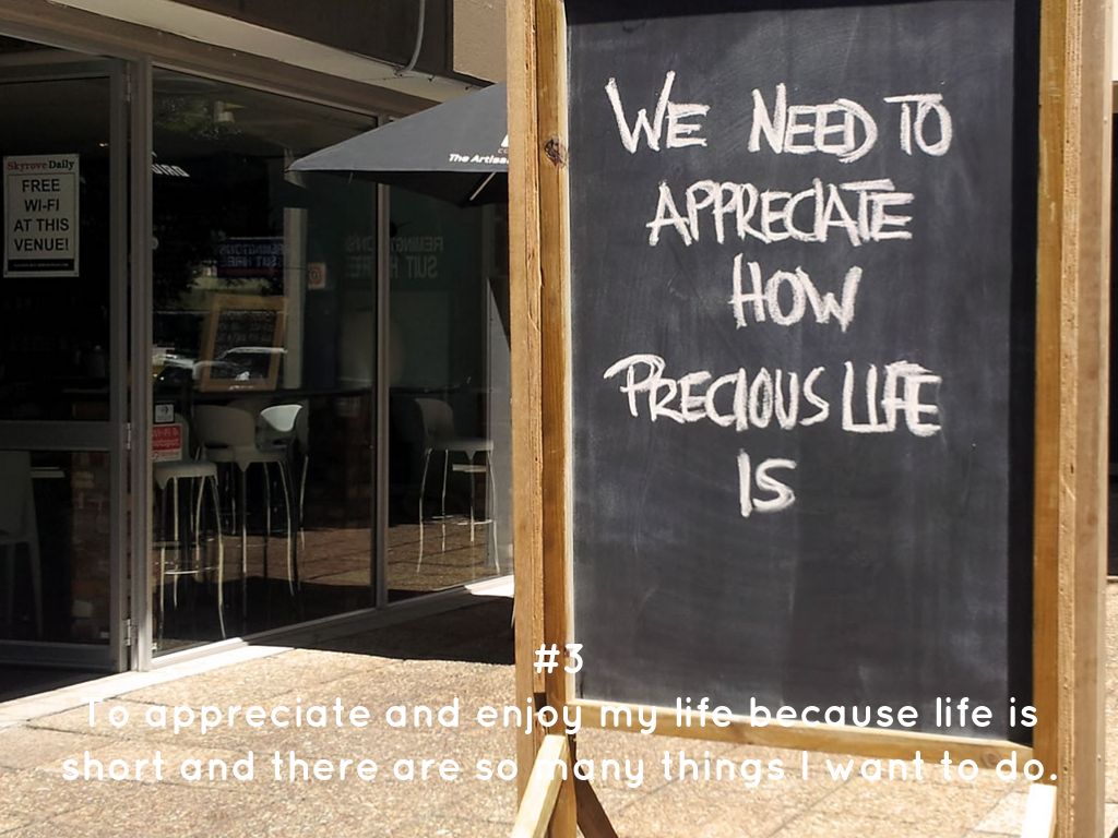 To appreciate and enjoy my life because life is short and there are so many things I want to do.