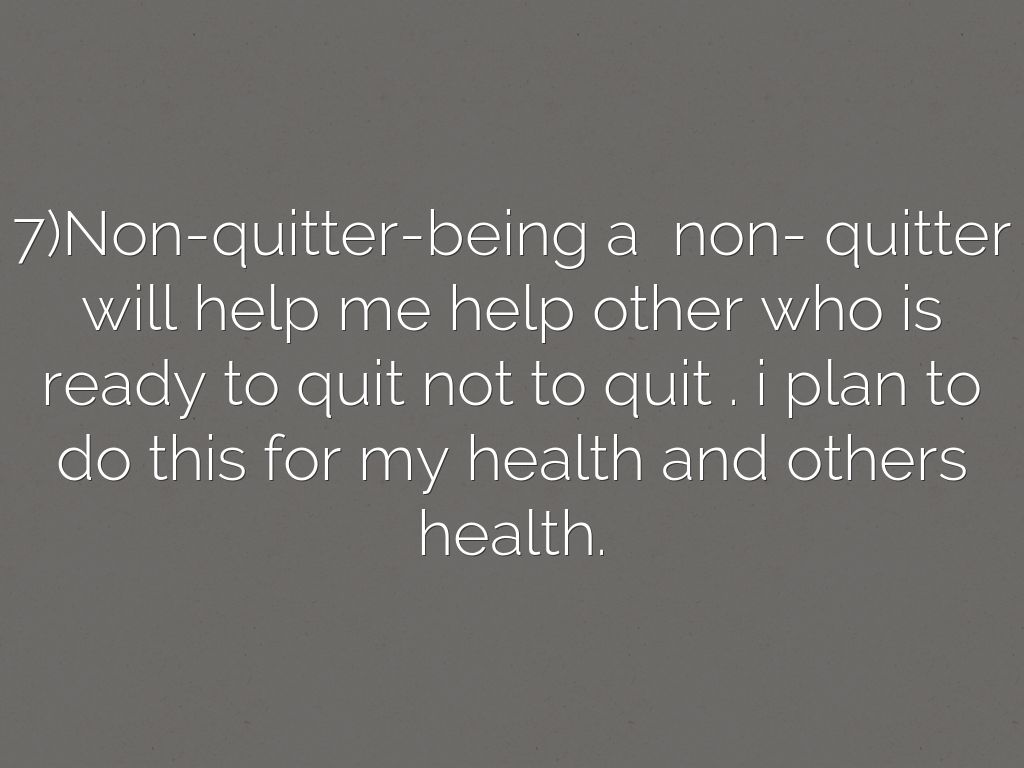 7)Non-quitter-being a non- quitter will help me help other who is ready to quit not to quit . i plan to do this for my health and others health.