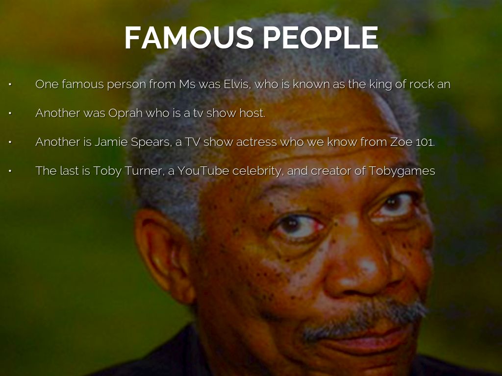 • One famous person from Ms was Elvis, who is known as the king of rock an