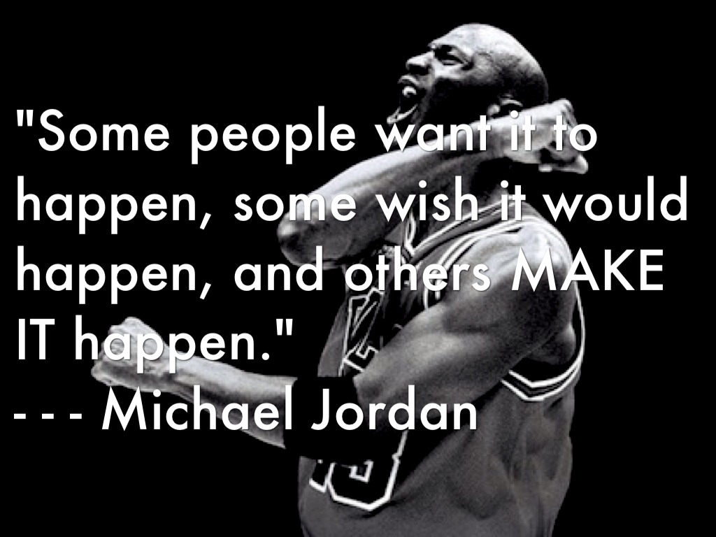 "Some people want it to happen, some wish it would happen, and others MAKE IT happen."