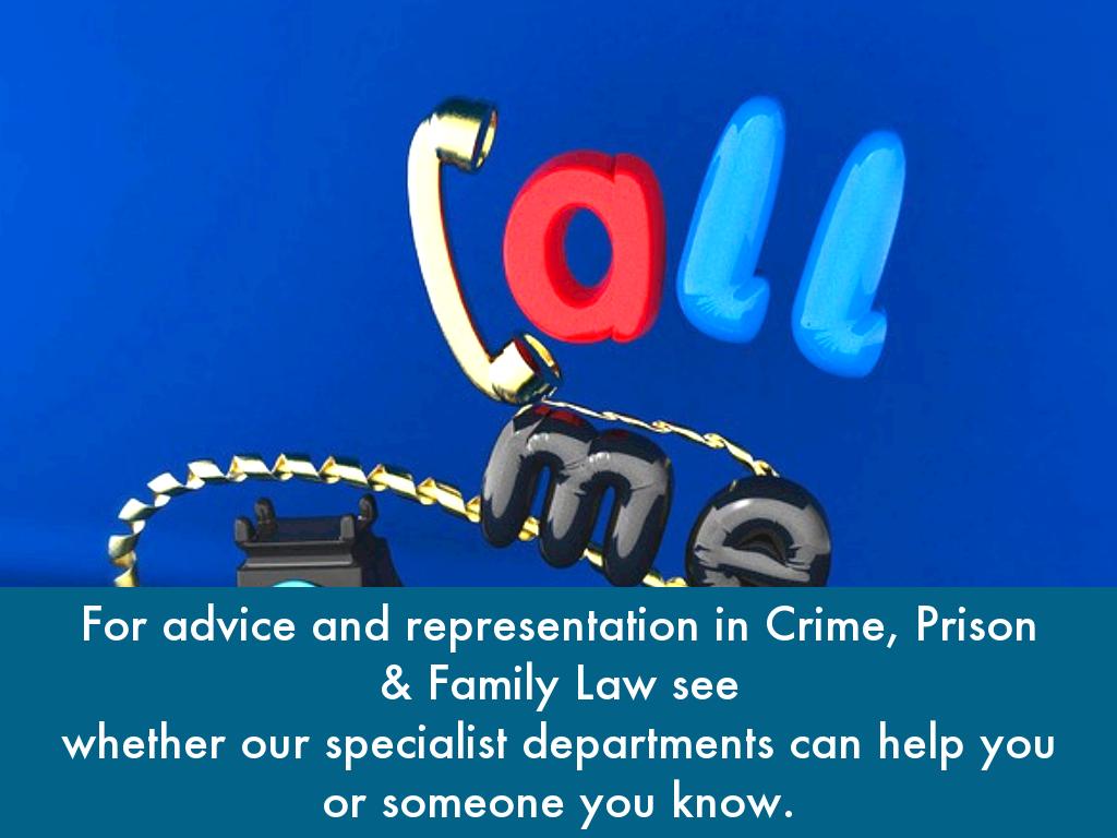 For advice and representation in Crime, Prison & Family Law see whether our specialist departments can help you or someone you know.