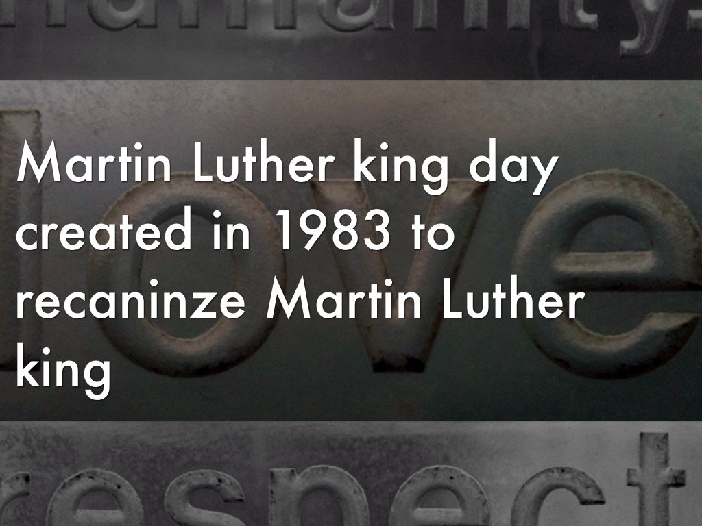 Martin Luther king day created in 1983 to recaninze Martin Luther king